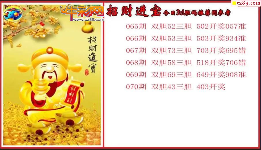 > 26年070期3d 招财进宝今日胆码推荐图参考